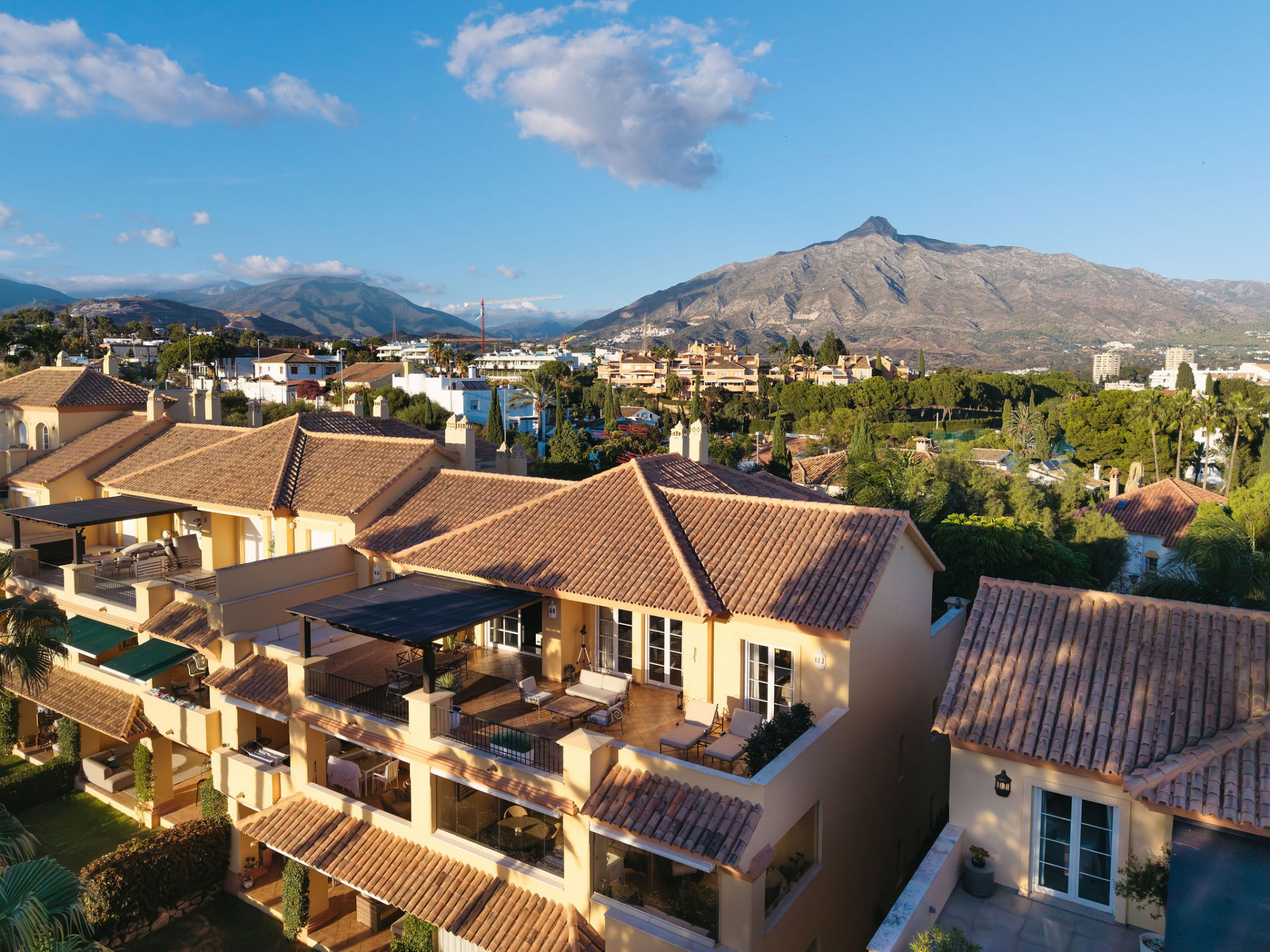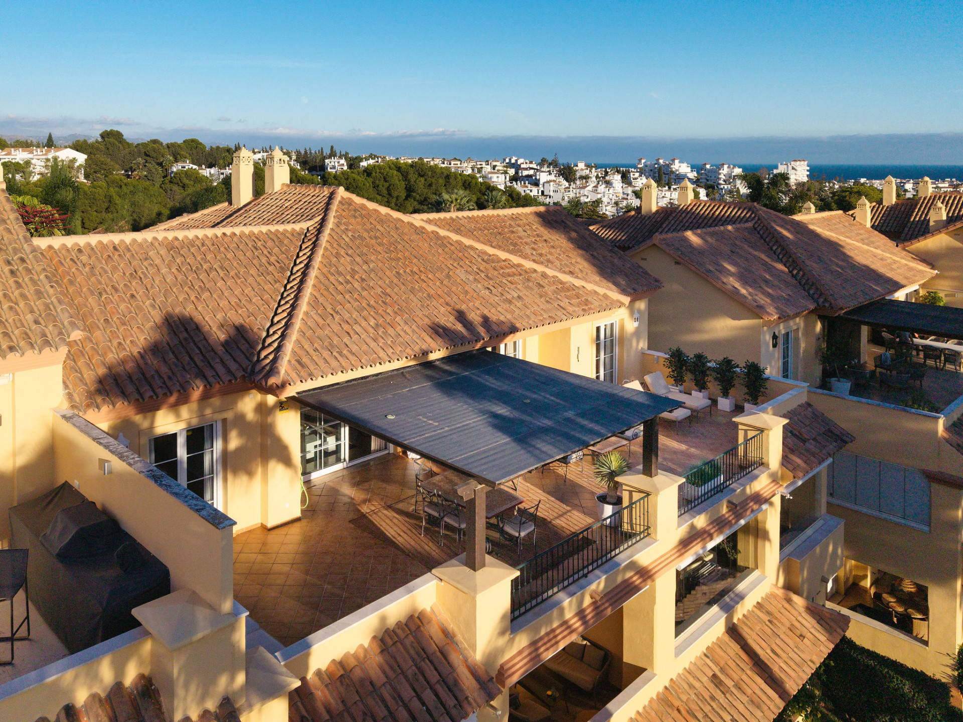 The main terrace is the heart of this penthouse — an extraordinary outdoor living area offering sun, shade, dining, lounging, and sunbathing zones. It’s the ideal space for relaxing or entertaining while enjoying panoramic views of the valley, sea, and mountains. As evening falls, the sunsets are simply spectacular.